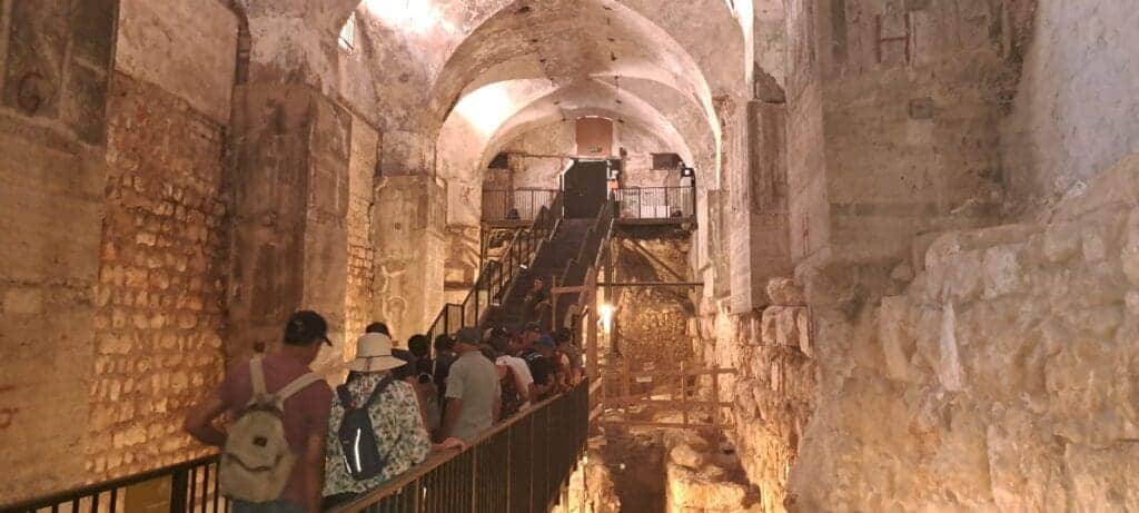 נחזור לענייננו. הדלתות הכבדות נפתחות. מהאור הבוהק שבחוץ אנחנו עוברים לעולם אחר, נסתר ועמוק. ברוכים הבאים לאתר חפירות הקישלה. ראם שבעצמו חפר במקום לפני יותר מ-20 שנה, מעיד על החוויה מכלי ראשון ומספר כיצד כשרק הגיעו לכאן, כל ה"בור" שאנחנו רואים לרגלינו כלל לא היה, כי הכל היה מכוסה עפר כמעט עד לתקרת המבנה. החופרים פינו כמויות אדירות של מילוי וכך הלכו ונחשפו הממצאים המרתקים.