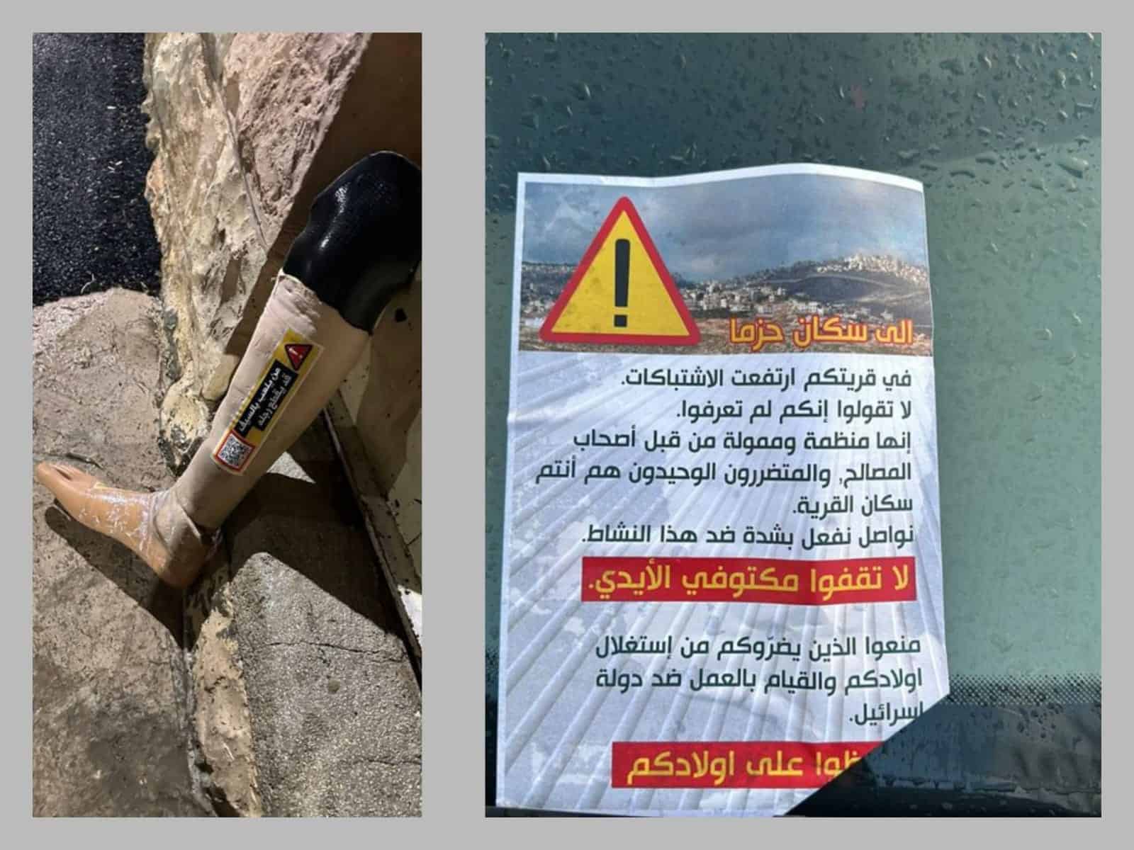 כמו כן פוזרו ברחבי העיירה עלונים ובהם אזהרות.