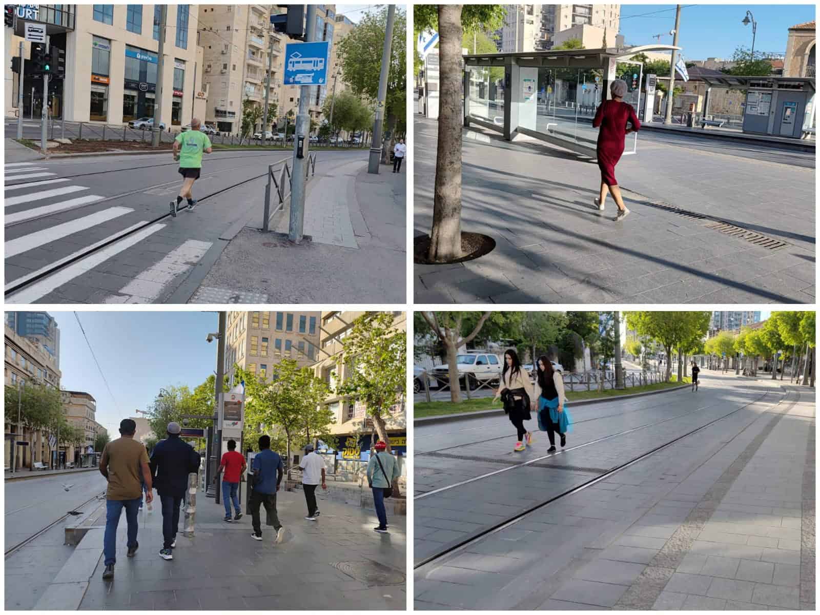 הנוף האנושי הנחשף בשבתות לאורך רחוב יפו הוא נוף "הרצים וההולכים". בין הממהרים לתפילת שחרית, עטויי טלית ושטריימלים לכיוון הכותל המערבי, נמצא בהתבוללות שקטה את הלובשים בגדי ספורט ממותגים, עטוי מד לחץ דם ופדומטר למדידת מספר הצעדים. מנפנפים לשלום למקום שהיה קולנוע ציון האגדי, וממשיכים לכיוון בניין ג'נרלי.