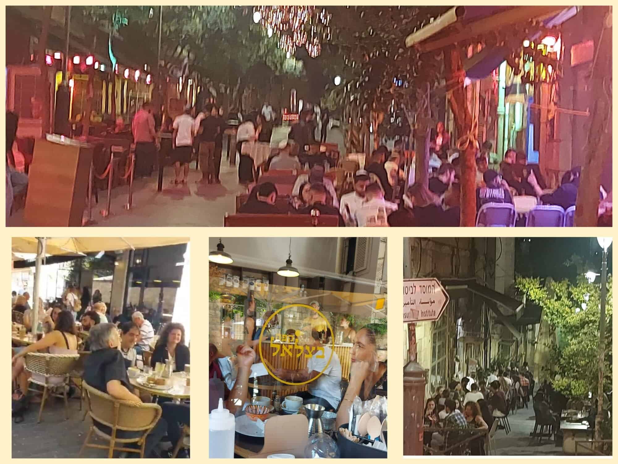 במהלך הלילה אתמול, מוצ"ש, שוב נצפה מתחם הבילויים בשוק מחנה יהודה כשהוא חוזר לשקוק חיים. התפוסה אמנם לא מלאה, אבל המבקרים חוזרים לחיות והלילות של שוק מחנה יהודה חזרו להיות פעילים, לפחות במוצ"ש הזה. כך גם לגבי המדרחוב במרכז ירושלים, שרבים מתושבי הדרום והצפון ששוכנים במלונות שסביבו, לאחר שפונו מבתיהם – נראים כמי שנמצאים בכלל בסיור תיירים בירושלים.