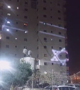 זו כנראה הסיבה שאתמול בלילה, שלישי-רביעי, בעיצומה של מלחמת "חרבות ברזל", החליטו ישראלים עלומי שם להתריס כנגד תושביו ולערוך דווקא בליבו של מחנה הפליטים מופע לייזר להזדהות עם ישראל. במופע הוקרנו על קירות הבניינים במחנה דגל ישראל והסיסמה "עם ישראל חי".
