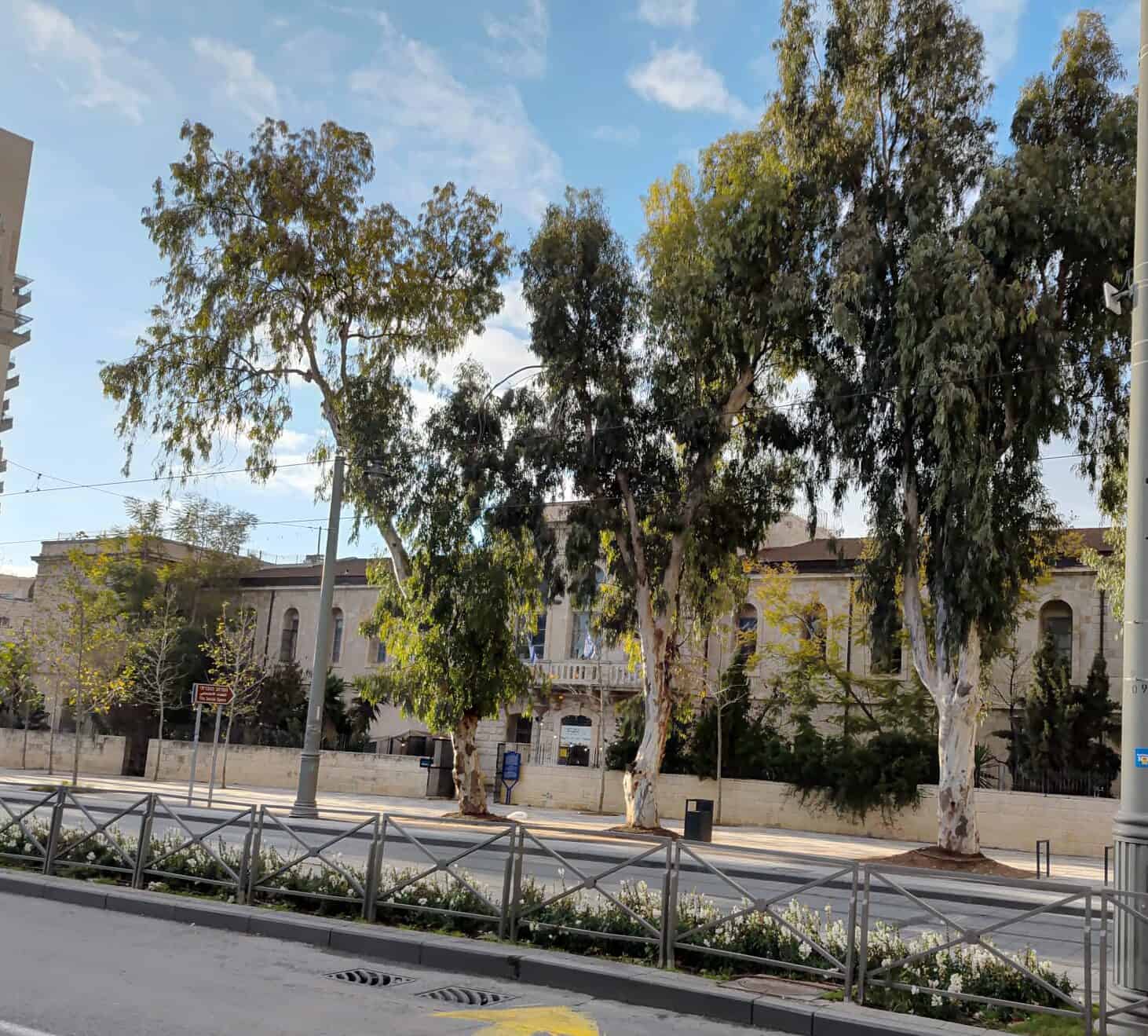 אקליפטוסים אחרים, מרהיבים ביופיים, עוטים טלית ירוקה ושומרי מצוות, הם אלו הצומחים ברחוב הכרמל, שכונת מזכרת משה, מול בית הכנסת "חסד ורחמים". אלו היו שותפים לאירועים שהתרחשו בסמוך – נוגעים בתכלת, שמעו תפילות, קידושים, מזמורים וברכות. כילדים למדנו על האקליפטוס שנשתל בארצנו לייבש ביצות. מה, גם בירושלים היו ביצות? לא הבנו, ולא תמיד הסבירו.