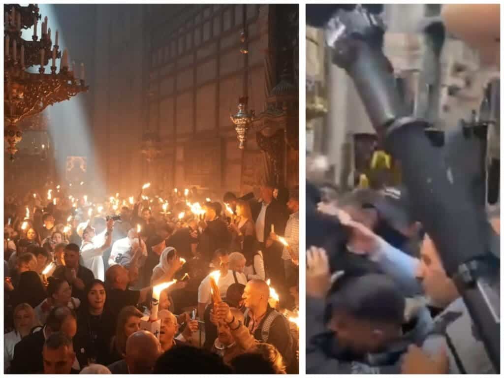 "שבת האור" בכנסיית הקבר בירושלים: צפו – עימות בין מתפלל לשוטרים