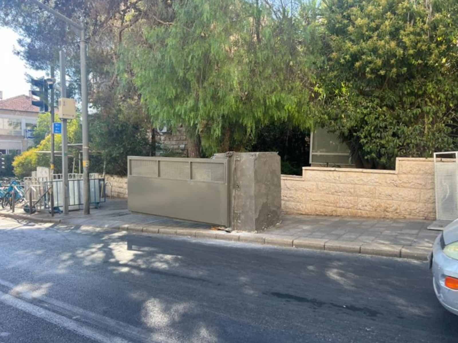 כל הרשויות הנוגעות בדבר – משרד ראש הממשלה, עיריית ירושלים, משטרת ישראל ושב"כ מגלגלות את האחריות להתקנה מאחת לשנייה. תהא האחריות של מי שתהא, במקום הותקן מחסום מגושם, המורכב מקוביית בטון ענקית, התופסת את כל רוחב המדרכה, ואליה חובר שער ברזל גדול, אותו ניתן לפתוח בשעת הצורך לכל רוחב הכביש ולחסום הרמטית מעבר של רכבים והולכי רגל.