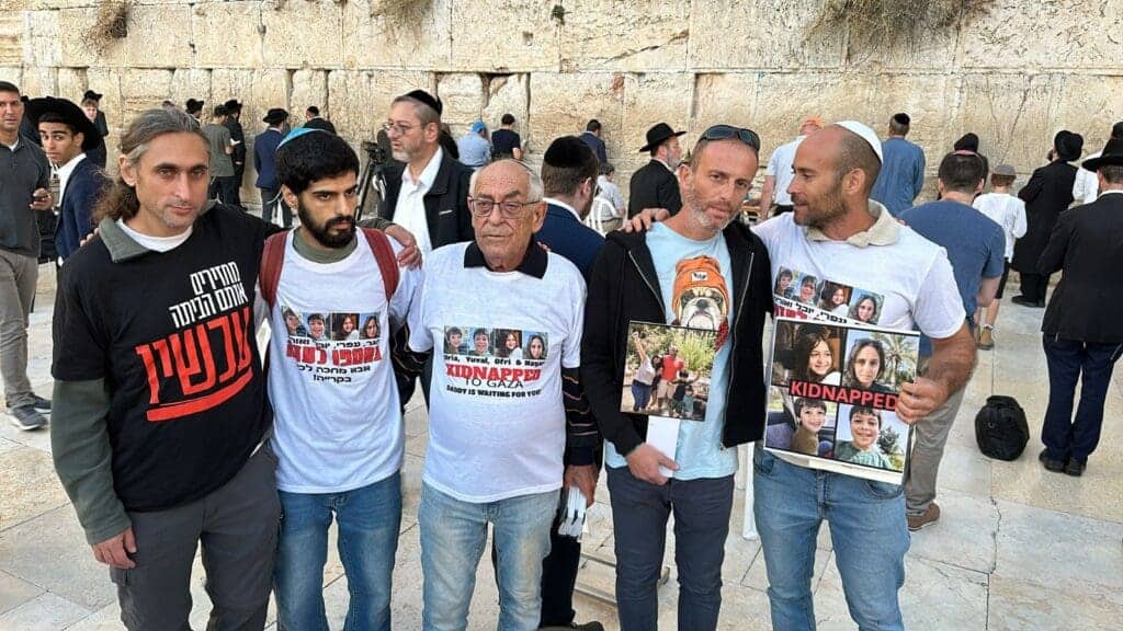 אביחי ברודץ, שאשתו וילדיו נחטפו לעזה, הגיע היום, חמישי, להתפלל בכותל המערבי בירושלים, וזה המסר שלו: "אני רוצה להעביר כאן מהמקום הקדוש הזה מסר, להזכיר לכולם על החשיבות של משפחה והחשיבות של ילדים לאב ואישה לבעל, אני חושב שזה מה שמחזק את כולנו ומחזיק אותנו ביחד, האהבה הזו של אב למשפחתו. להזכיר לכולם שזה מה שהכי חשוב לנו גם בתור עם ולשאוף שיחזרו כמה שיותר מהר".