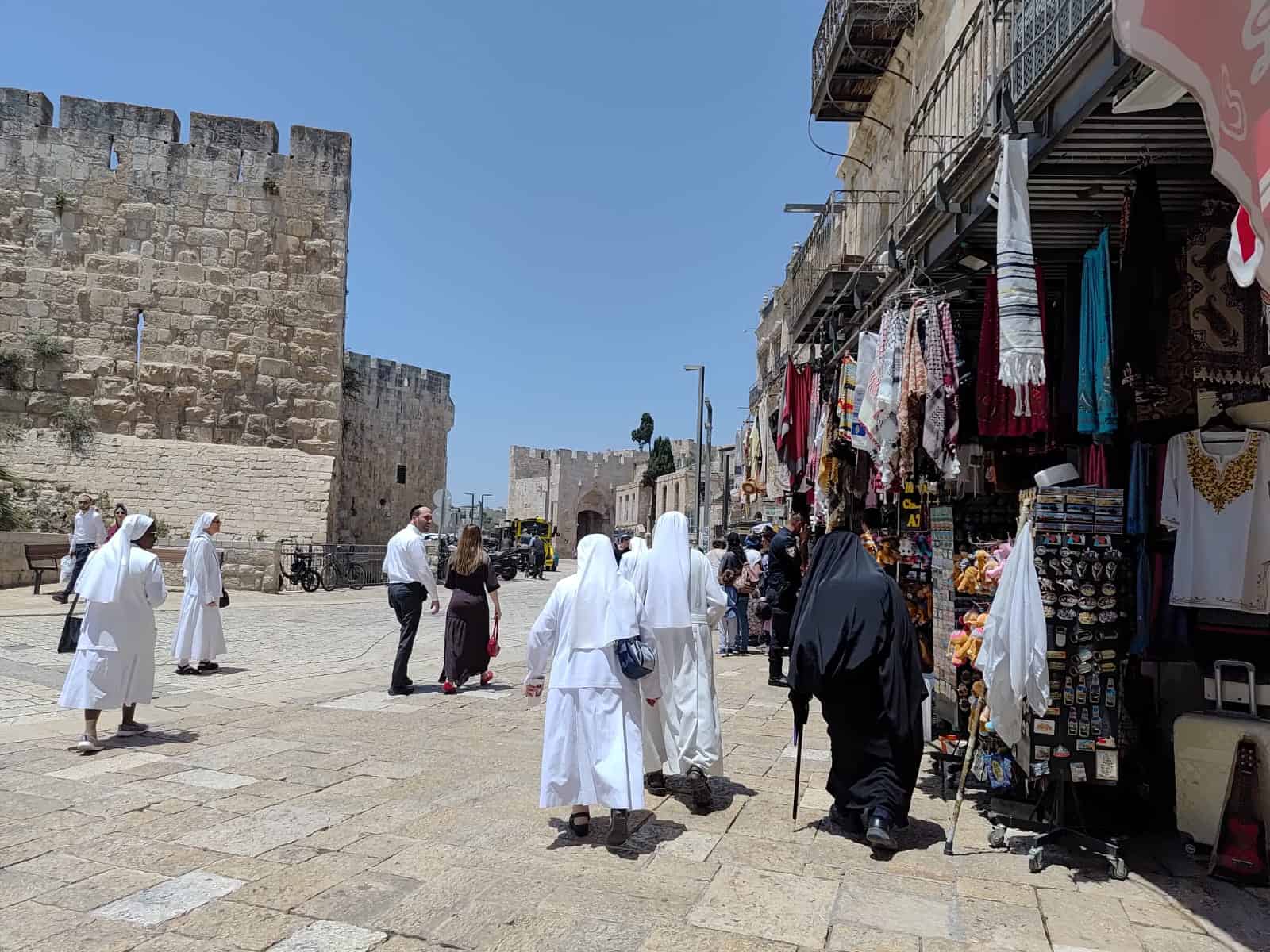 רגע האזעקה בשער יפו, ירושלים – אנשים נעצרים, מביטים לשמיים, והמרחב משתנה. תיעוד מהיום בעיר העתיקה.(צילום: ירושלים אונליין – בארי שחר)