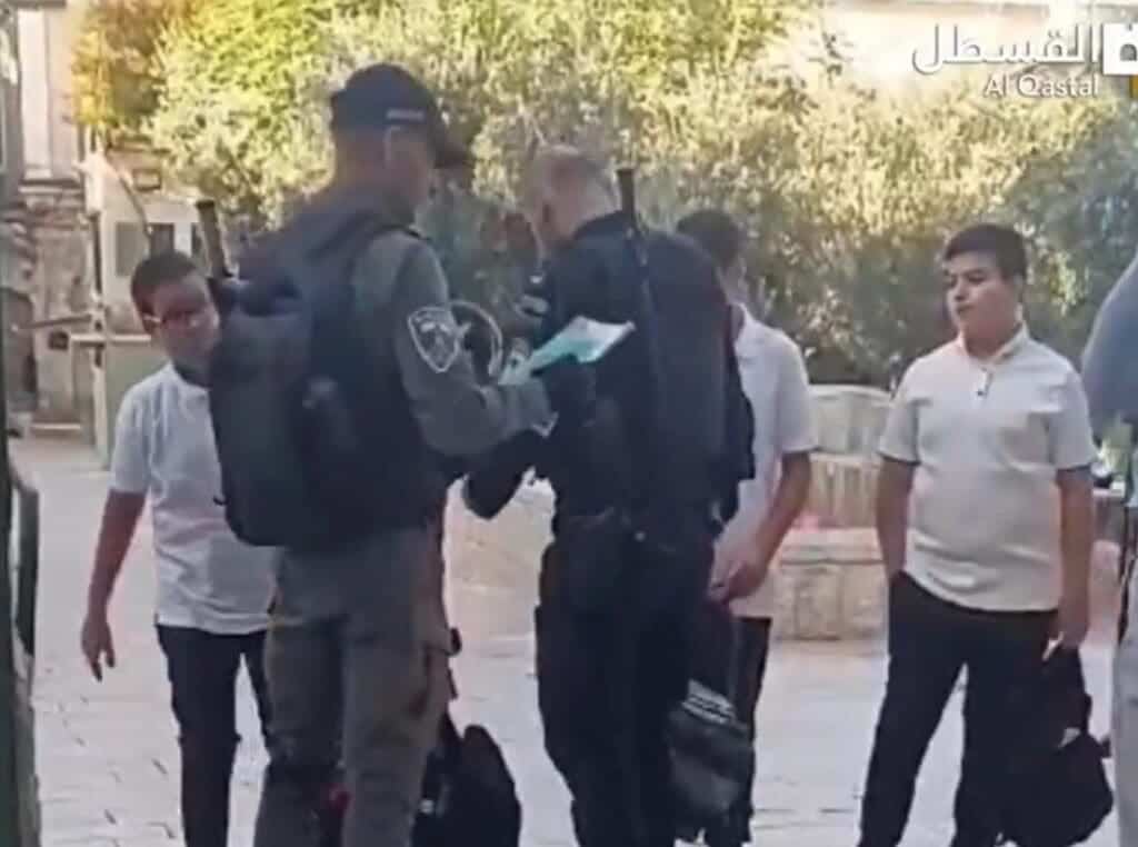גם הבוקר, רביעי, המשיכו שוטרים המוצבים בשער האריות בעיר העתיקה בירושלים לערוך חיפוש בתיקיהם של תלמידים פלסטינים שהגיעו ללימודים בבית הספר השרעי הממוקם במתחם הר הבית (אל אקצא).