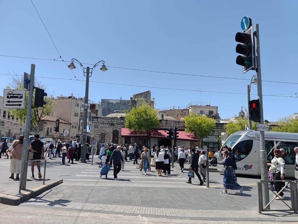 ברחוב יפו ובמעברי החציה הסמוכים נרשמה תנועה ערה לאורך רוב שעות היום. הרכבת הקלה ממשיכה לנוע במסלולה, אך העומס על מעברי החציה בולט במיוחד בשעות השיא של אחר הצהריים.
