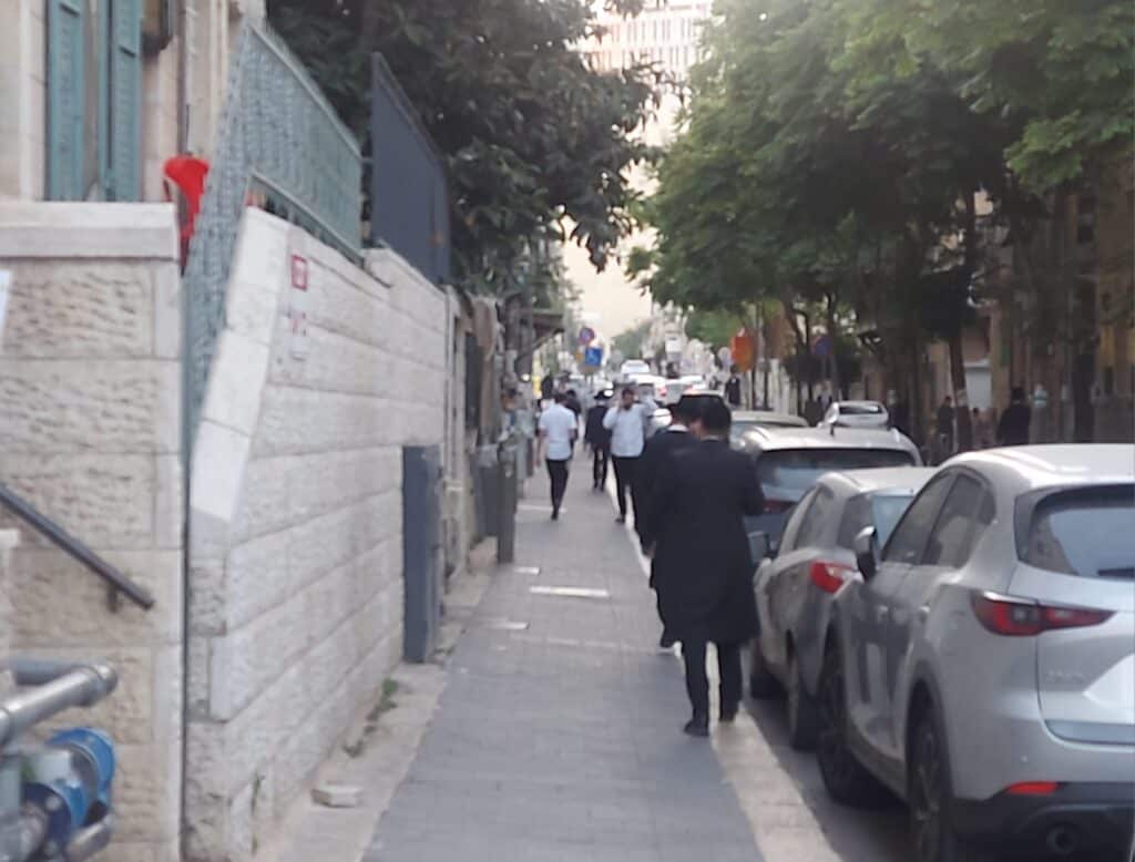 ברחובות החרדיים של ירושלים, גם יום רביעי יכול להרגיש כמו ערב חג. התמונה שצולמה לקראת ל"ג בעומר, מראה קבוצות של גברים חרדים צועדים לאט לאורך הרחוב, חלקם לבד, חלקם בחברותא, מתערבבים בין הצללים והאור הנמוך של בין ערביים. הרוח שכבר סוקרה בתחזית הבוקר ליום רביעי מורגשת כעת היטב, כשהיא נושבת בין בנייני האבן ומשחקת בציציות ובמעילים.