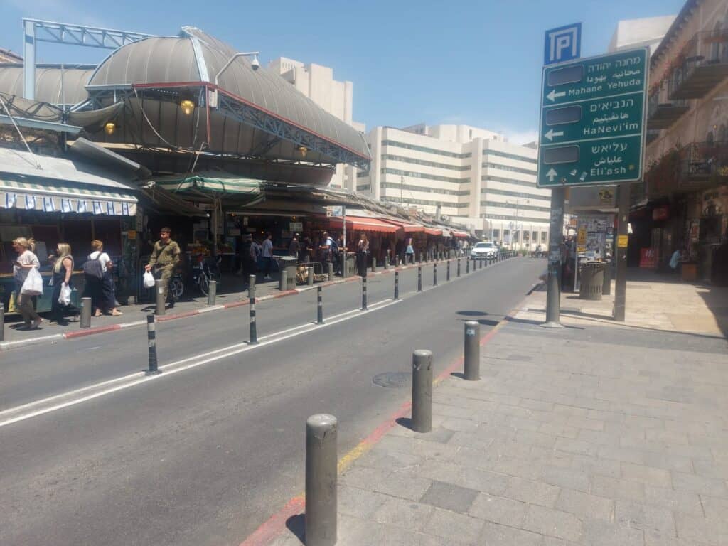 ירושלים, יום רביעי בבוקר. השעה קצת אחרי 11, השמש כבר קופחת, אבל התחושה – כאילו מישהו לחץ על "השהייה". ברחוב הראשי של שוק מחנה יהודה, ממש מול השלטים הגדולים שמורים על דרכים, כיוונים ועתיד אפשרי – עוברות דמויות לאט. תיירים עם שקיות, חייל בודד, בעלי עסקים שמחכים ללקוח הבא. ואף רכב לא נראה באופק.
