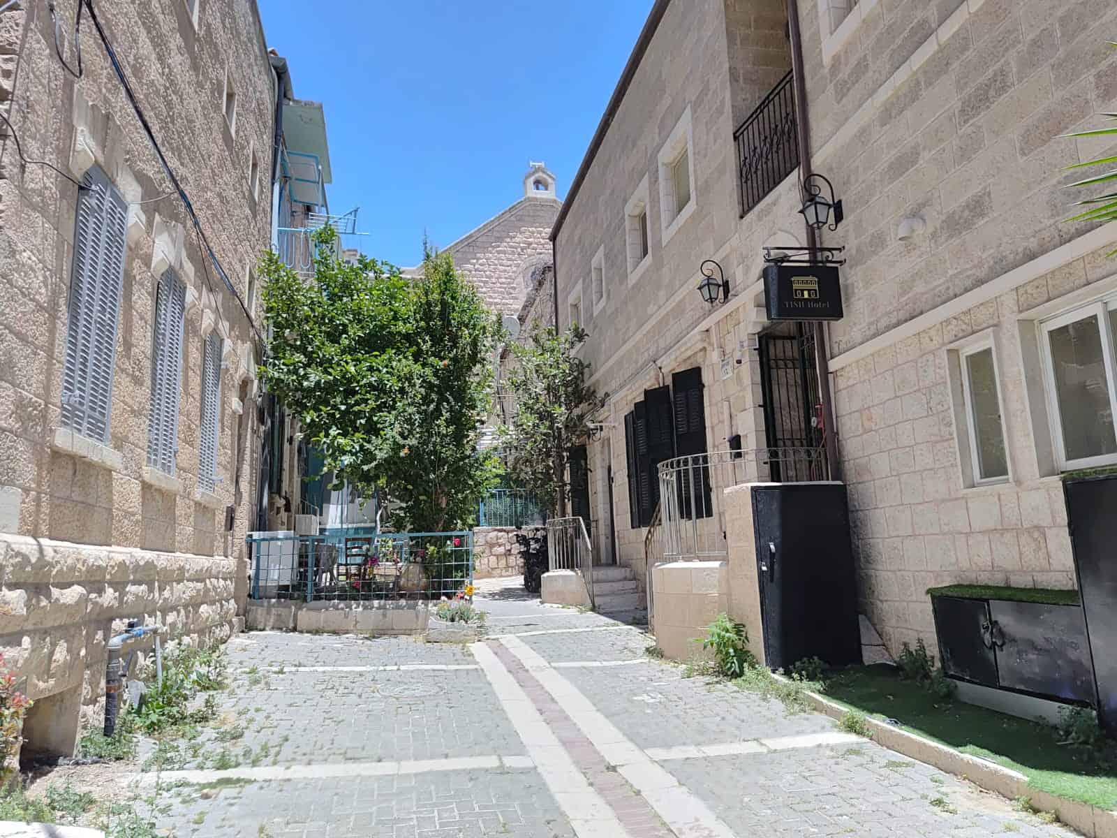 ברקע נשמעים קולות ילדים מרחוק, אולי מתוך חצר נסתרת, ואפילו המלון הקטן שבקצה הסמטה נראה כמו תפאורה. זו לא ירושלים של הכותרות – זו ירושלים שנשארת פנימה. בלי רעש, בלי תנועה, רק אור ושקט שמלטפים את האבן.