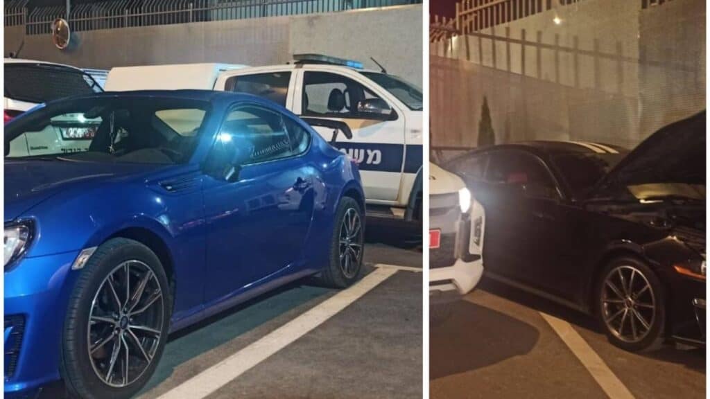 רכבי יוקרה שנתפסו לאחר ביצוע דריפטים בכניסה לאתר נבי שועייב