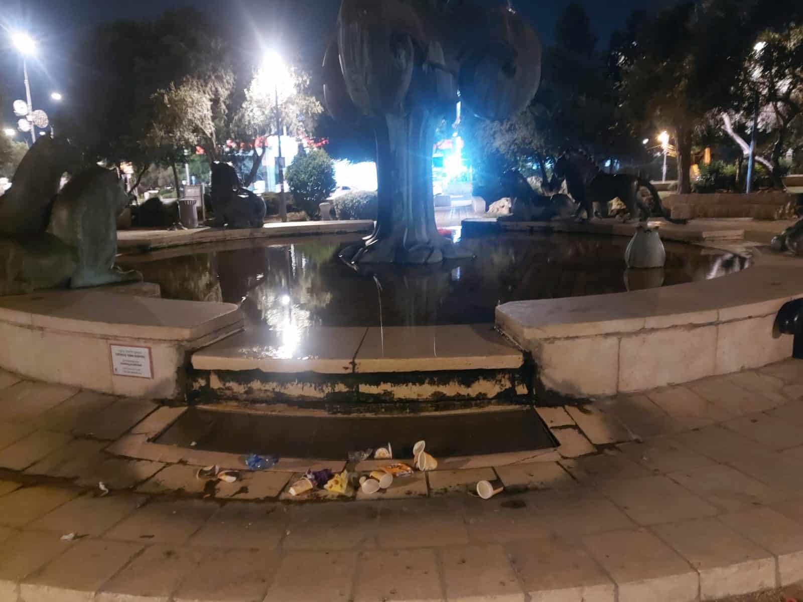 בין העיר העתיקה לגן הפעמון, בצל עצי אורן ופסלי ברונזה, עומדת מזרקת האריות – אחת מפינות הנוף המזוהות ביותר בירושלים. היא אמורה לסמל אחדות, שלום, היסטוריה. אך מה שראו המבקרים בסוף השבוע האחרון היה ההפך הגמור: לכלוך, ערימות של שקיות, כוסות חד־פעמיות, שאריות מזון. לא פספוס, לא מקרה בודד – אלא מראה שחוזר על עצמו.