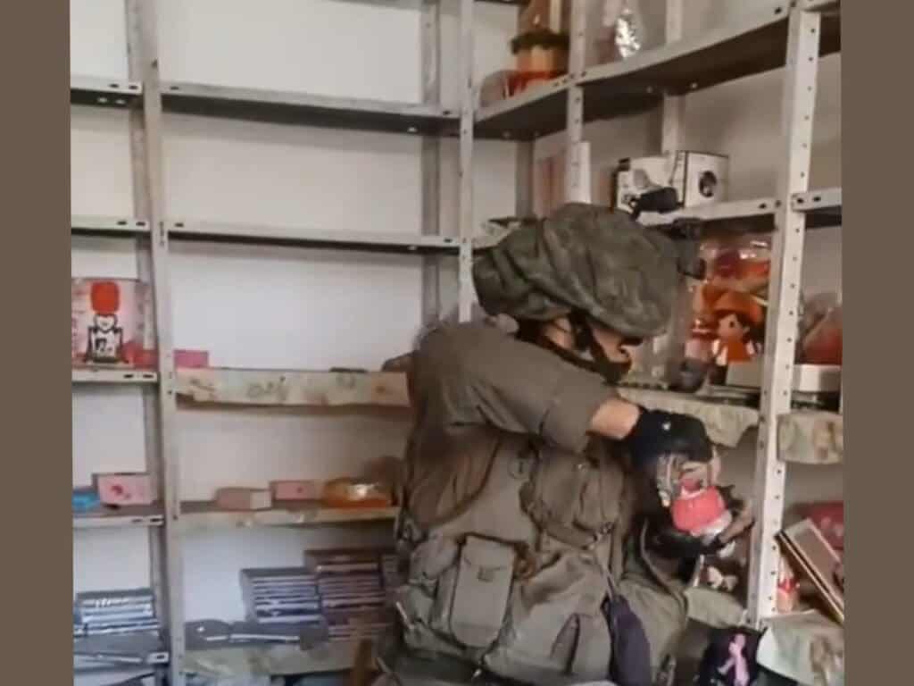 במהלך הסופ"ש העלו חיילי צה"ל בעזה, סרטון בו הם שוברים ציוד וסחורה במה שנראה כמו חנות כללית לממכר צעצועים ומוצרי מרכול בג'באלייה שברצועת עזה.