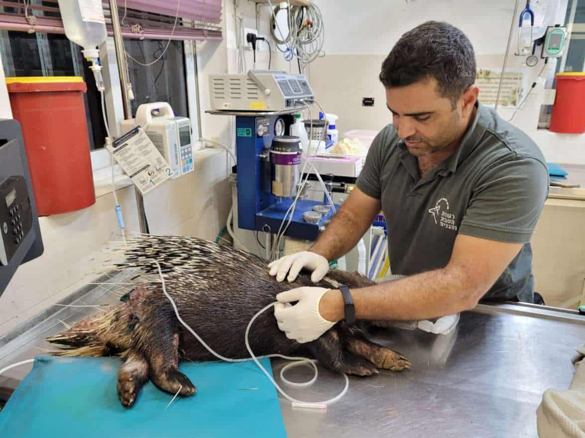לאחר טיפול ראשוני, העובר הדורבן הפצוע למרפאה של השירות הווטרינרי העירוני. בבדיקה גילו שהדורבן סובל משבר ברגלו. הוא קיבל טיפול והועבר להמשך שיקום בבית החולים לחיות בר בספארי.