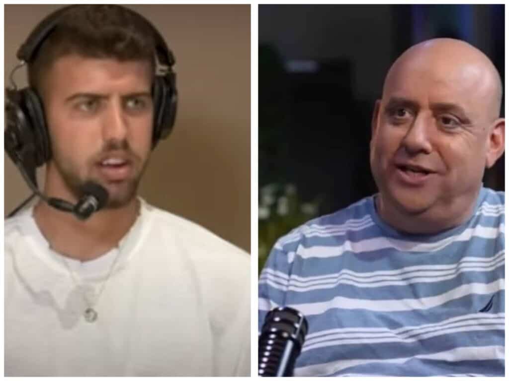 Eliy Madmon and a Hapoel Jerusalem board member during separate sports podcasts about the club