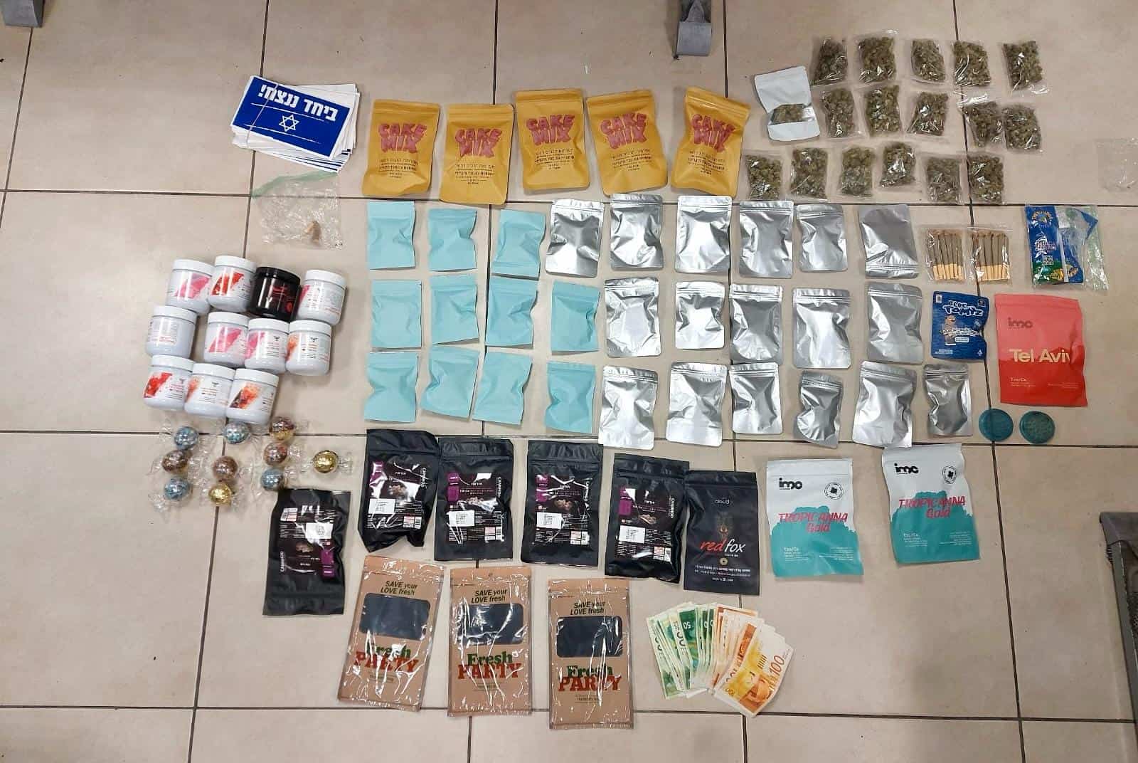 בחיפוש בדירתו, איתרו בלשי יל"פ ציון חומר רב החשוד כסמים מסוגים שונים במשקל רב של למעלה מ-15 ק"ג. בין החומרים החשודים שאותרו ונתפסו בדירה: מאות שקיות חלוקה המכילות חומר חשוד מסוג קנאביס ומריחואנה במשקל כולל של למעלה מ-3.5 ק"ג, עוגיות שמן קנאביס, קופסאות המכילות קנאביס במשקל של למעלה מ-7 ק"ג, "פלטות" ו"אצבעות" חשיש.