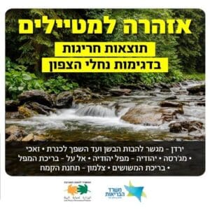 – יש להצטייד בכמות מתאימה של מים (לפחות 4 ליטר לכל מטייל).