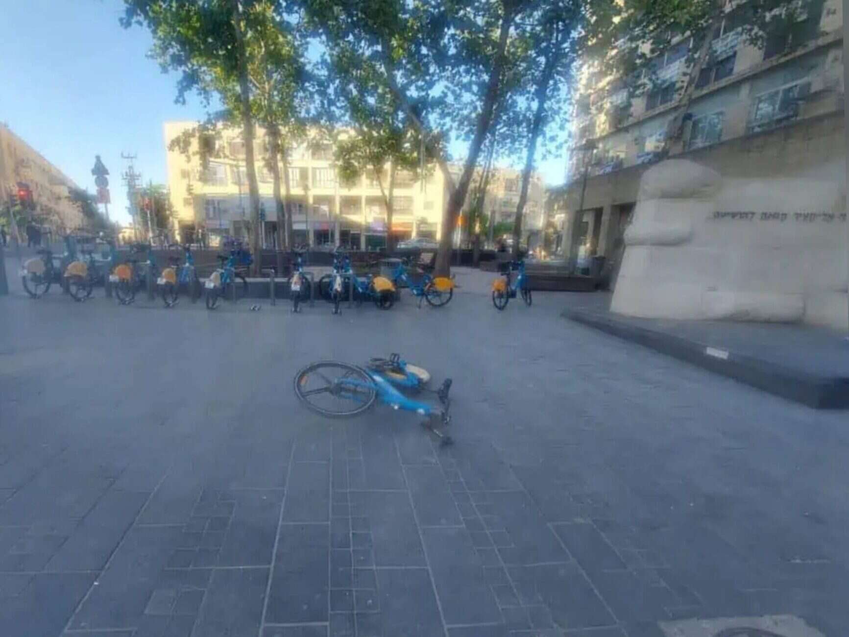 Abandoned bicycle in Davidka Square, Jerusalem, on a tense day during Iran–Israel conflict