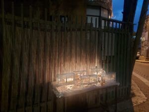 חנוכיות ניצבות בהמוניהן בכניסה לכל מתחם מגורים – בין אם מדובר בבניין ישן, חצר ברשות הכלל, או מבנה הסמוך לחדר לימודים קטן – חנוכיות מעטרות את הכניסה, בדיוק באופן ובכוונה המלאה בחנוכה – להביא את בשורת האור בפני המתבונן והעובר ושב.