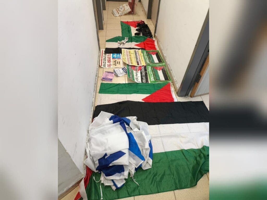 בעקבות פעילות חקירתית מודיעינית מקדימה, החליטו הכוחות להיכנס למחסן חשוד באותה שכונה, ושם התגלו חומרים מטרידים במיוחד. בתוך המחסן נמצאו דגלים נוספים של הרשות הפלסטינית, כרזות עם תכנים מסיתים נגד מדינת ישראל וכן מספר מכשירי קשר, שיכולים לשמש לתיאום פעילויות לא חוקיות. כל הממצאים הוחרמו והועברו לתחנת המשטרה לצורך המשך חקירה.