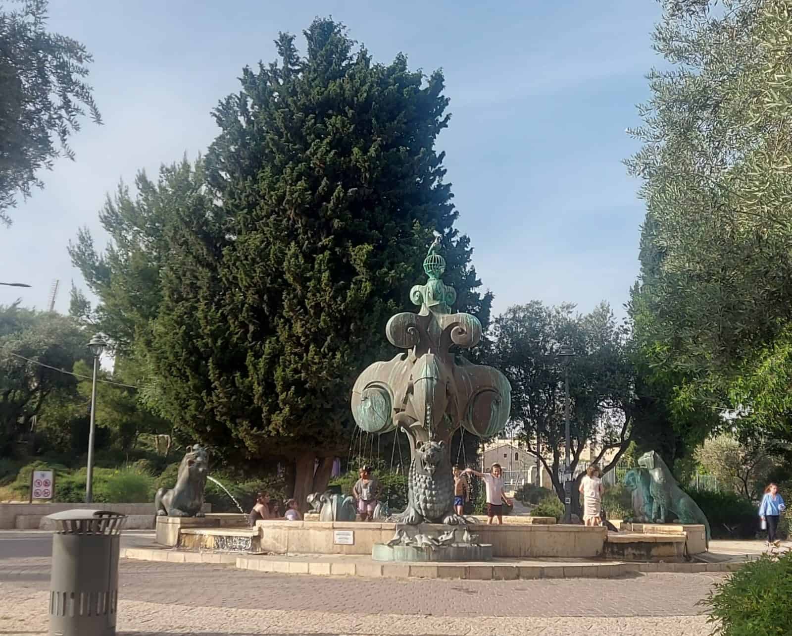 יום חם בירושלים. הצל עוד קצר, השמש עוד ארוכה, והמים במזרקה שבשיפולי משכנות שאננים ומול מתחם תחנת הרכבת זורמים בקצב רגוע. המקום מוכר לכל ירושלמי – מזרקת האריות, שהוקמה בשנות ה-80', משקיפה על גן הפעמון, מוקפת באריות ברונזה סמלים, וסביבה דשא, ספסלים ואבנים עתיקות.