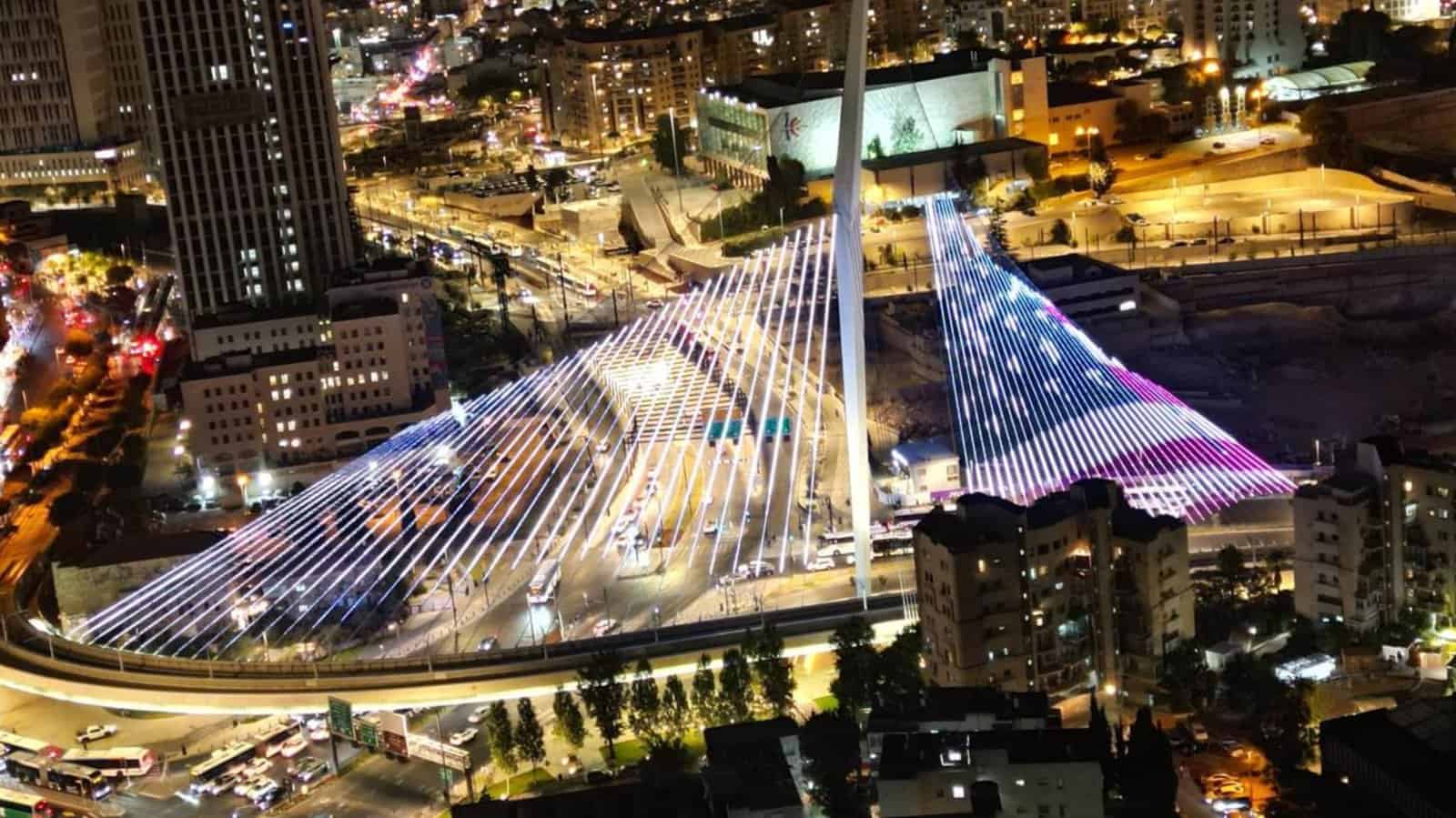 חומות העיר העתיקה של ירושלים וגשר המיתרים הוארו הערב בצבעי הדגלים של ישראל וארה"ב. המהלך בא ביוזמת העירייה, כאות תודה לנשיא דונלד טראמפ על המהלך ההיסטורי שהוביל לשחרור החטופים משבי חמאס בעזה ולסיום הלחימה.