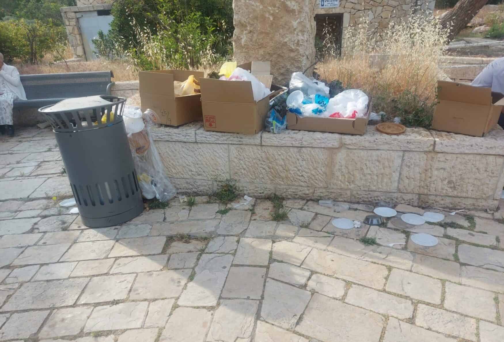 שישי אחר הצהריים, משכנות שאננים. פינה ירושלמית פסטורלית, נוף פתוח לחומות העיר, עצים עתיקים, מבקרים מכל הארץ – ואז גם קרטונים פתוחים עמוסי פסולת, שקיות פלסטיק מתעופפות באוויר, כלי אוכל חד־פעמיים פזורים על הארץ, ופח אחד בודד שלא מסוגל להכיל את כל זה. התמונה שצולמה היא מיום שבת – למחרת – כל זה עדיין עמד שם. באותו רגע המציאות לא רק כללה את הלכלוך, אלא את כל הפער שבין מה שרואים – לבין מה שמספרים.