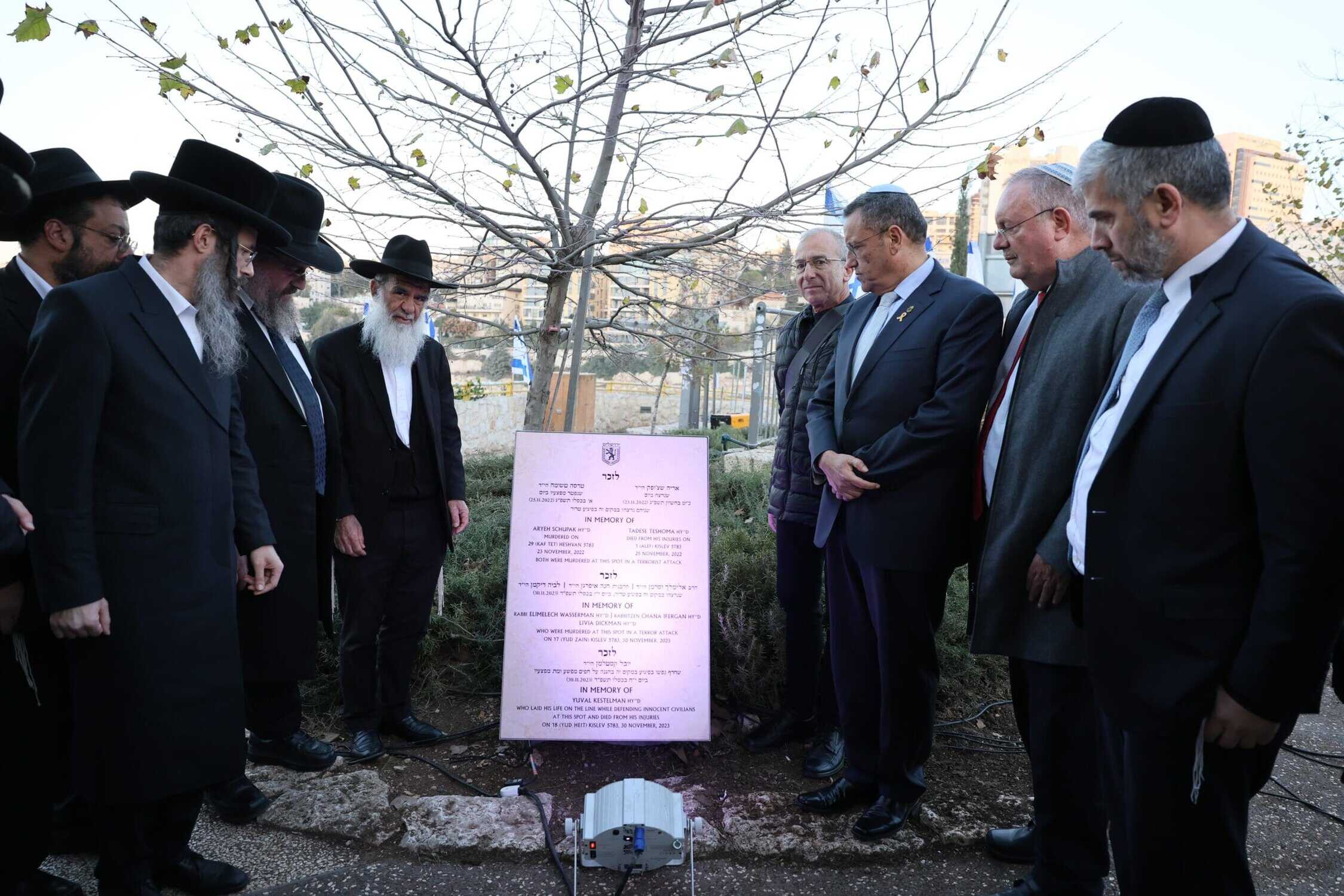 ראש העיר ירושלים, משה ליאון, חשף היום, ראשון, את לוח ההנצחה שהוצב בטרמפיאדה שביציאה מירושלים, ביחד עם בני משפחות חללי הפיגוע האחרון שאירע שם – יובל קסטלמן ז"ל, הרב אלימלך וסרמן ז"ל, חנה איפרגן ז"ל וליביה דיקמן ז"ל.