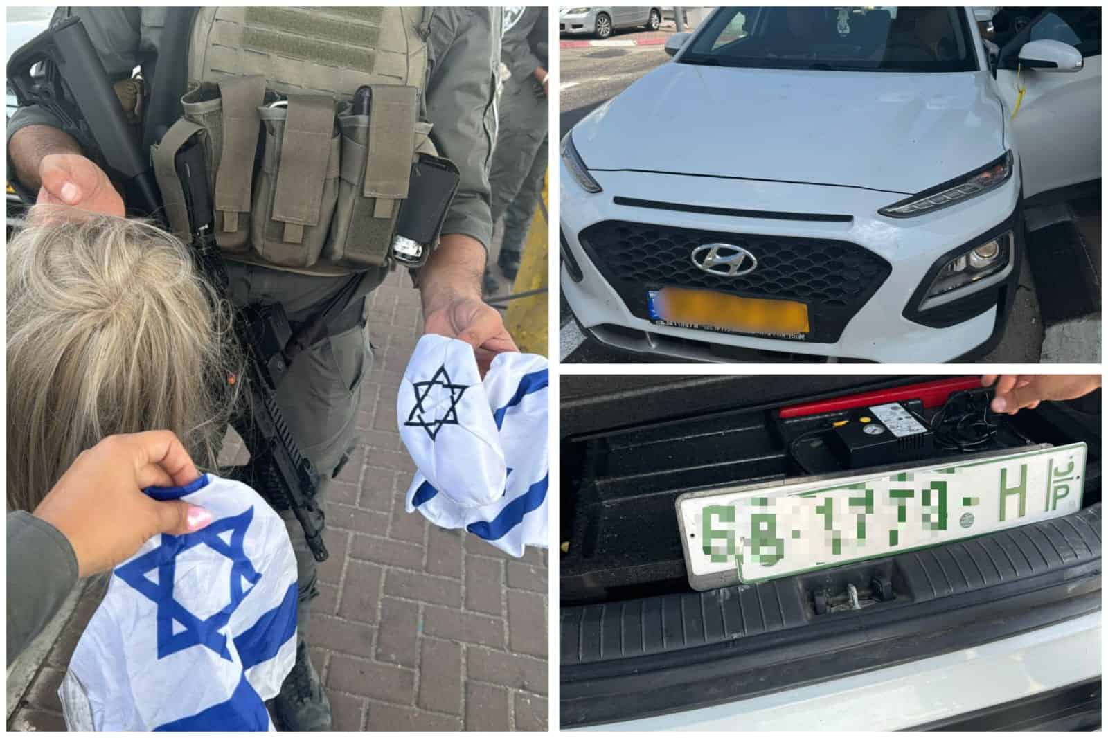 בעת בידוק הרכב, מצאו הלוחמים כי הנהגת החשודה היא תושבת השטחים ללא אישורי שהיה בישראל, כאשר בו בזמן ברכב נסעו עוד שלושה שוהים בלתי חוקיים, שהניחו לצדם דגלי ישראל, כיפה ופאה. בנוסף, איתרו הלוחמים בתא המטען של הרכב שוהה בלתי חוקי נוסף וכמו כן לוחיות זיהוי פלסטיניות ששייכות לרכב במקור – לאחר בדיקה במערכות, התברר כי הלוחיות הפלסטיניות המקוריות של הרכב הוחלפו בלוחיות רישוי ישראליות גנובות של רכב שירד מהכביש.