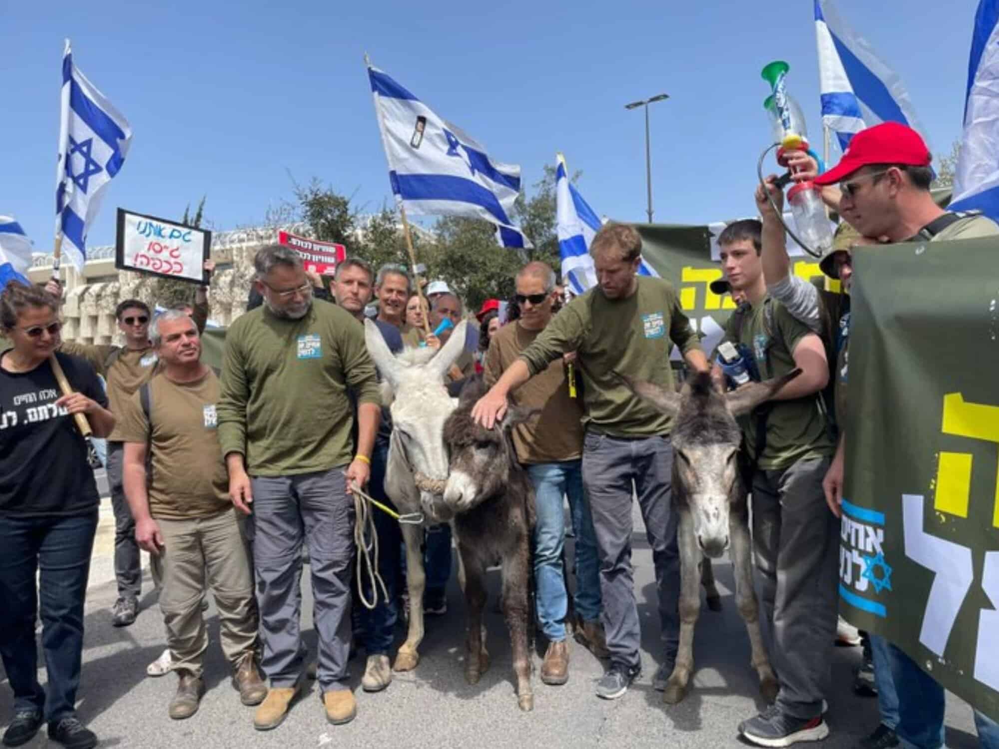 "לא נהיה חמורים" פעילי אחים לנשק צועדים בהפגנה נגד חוק הפטור מגיוס עם חמורים סביב הכנסת pic.twitter.com/zzzfsGs45y