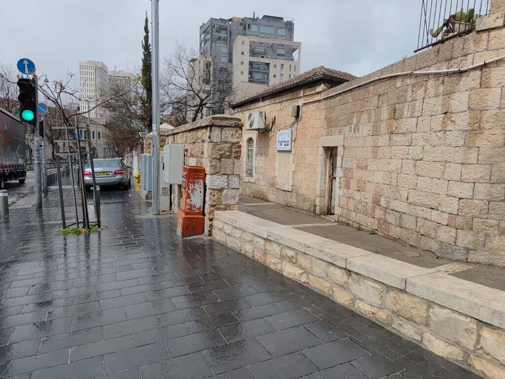 רחוב בירושלים רטוב מגשם ביום מעונן, משקף את מזג האוויר הגשום הצפוי ביום שני 5.5 בעיר