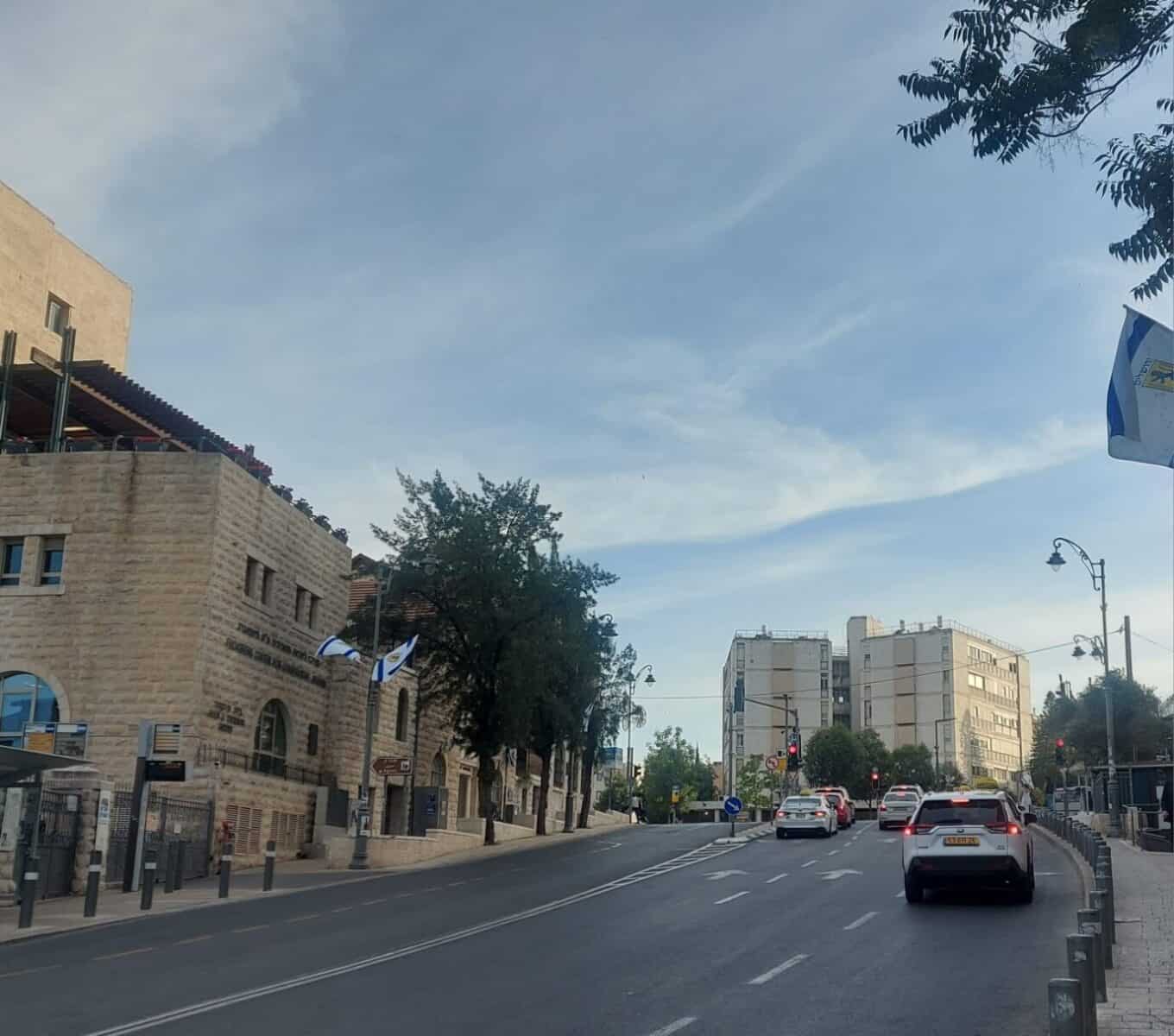 שדרת דגלים ורחוב כמעט ריק בשעות הבוקר בירושלים