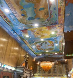 אל העוצמה הייחודית הזאת מתווספת תפאורת בית הכנסת – מוזיאון קסום המלווה את המתפלל שלא חדל להתפעל גם תוך כדי תפילה. איורי התקרה לקוחים מתיאור בריאת העולם. חלונות ויטרג' מעוצבים בנושא חודשי השנה וסמלי החגים. גלגל המזלות, שבעת המינים, ציורים אומנותיים של שבטי ישראל, ציור קסום של קטע מהכותל, והיכל הקודש עטור פרוכות יפיפיות מלאות הדר.