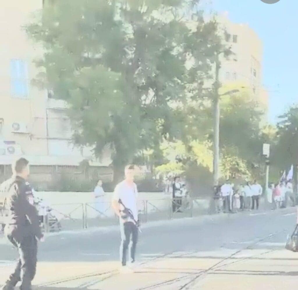 ירושלים בכל אופן רותחת סביב אירועי המהפכה המשפטית. וכך נודע כי מפגינים באזור גשר המיתרים פנו בעת ההפגנה לשוטרים באזור וציינו כי הם "חשים מאוימים מבחור שעומד עם נשק". אותו בחור אמנם כלל לא פנה אל המפגינים, ורק התבונן בנעשה, אך מנגד ציינו המפגינים כי הנשק נמצא במצב הכנס, עם מחסנית בפנים.