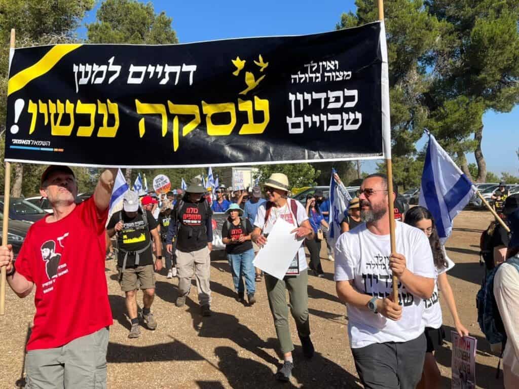 אלא שאם עד כה היה נדמה כי התמיכה בשחרור החטופים איננה יכולה לבוא בקרב "הבייס האמוני", שלא יסכים לכאורה לקבל שחרור מחבלים והפסקת הלחימה, הרי שבשמש הקופחת ובחום שמתקרב ל-40 מעלות, מובן כי מטרת המצטרפים לצעדת משפחות החטופים היא ברורה – הפגנת נוכחות של ציבור דתי, כך שיובן שגם בקרבו יש תמיכה חזקה בביצוע עסקת חטופים.