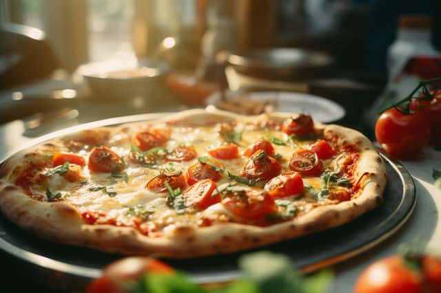 - אופים את הפיצה בתנור החם במשך כ-15-20 דקות, עד שהגבינה מותכת והפיצה מזהיבה.