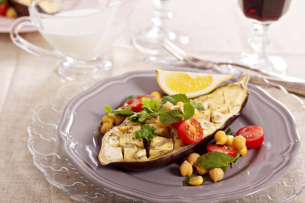 - הרכבת הסלט: בקערה גדולה, ערבבו יחד את החצילים המטוגנים, קוביות העגבניות, פרוסות הבצל הסגול, עלי הנענע ועלי הכוסברה.
