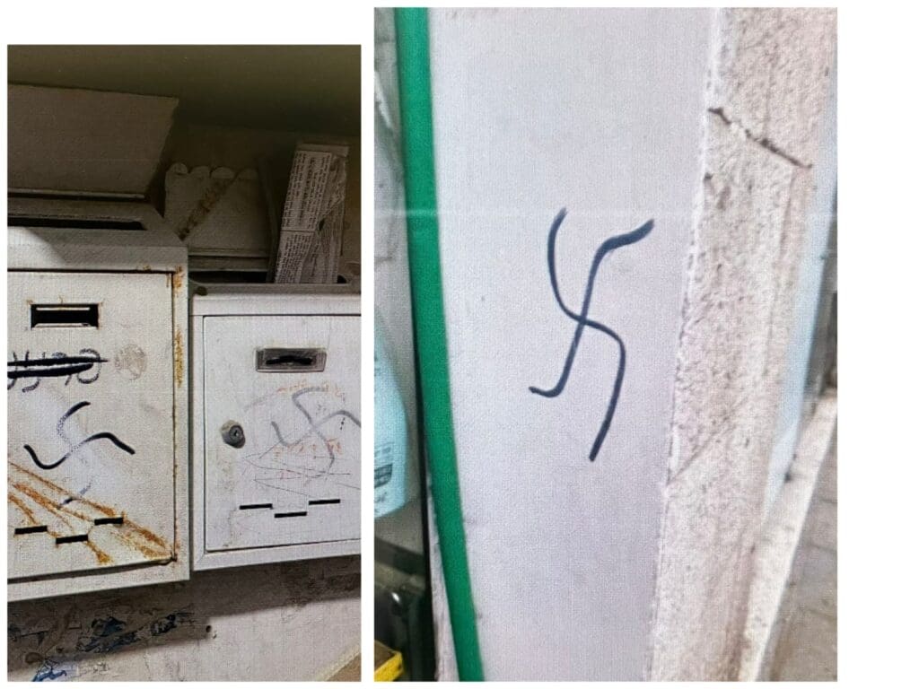 במוצאי השבת האחרונה, התקבל דיווח למשטרה על צלבי קרס שצוירו על גבי תיבות דואר ברחוב שטראוס וברחוב התבור. שוטרי תחנת לב הבירה במחוז ירושלים שהוזעקו למקום, החלו באיסוף ממצאים ונפתחה חקירה במשטרה במטרה להתחקות אחר החשוד במעשה. בו בזמן, עוד דיווח התקבל דיווח על מקרה נוסף שבו צוייר צלב קרס בפתח בית עסק ברחוב שטראוס, וגם ממקום זה נאספו ממצאים על ידי השוטרים.