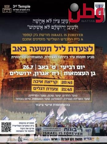 כמדי שנה, גם השנה מארגנות עמותות הימין צעדת דגלים סביב חומות ירושלים בליל תשעה באב. השנה יחול ליל תשעה באב ביום רביעי ה-26.7.2023. ההתכנסות היא בגן העצמאות ומשם תחל הצעדה בשעה 21.45 דרך רחוב אגרון לעבר חומת העיר העתיקה בואך אל השער החדש ומשם דרך שער שכם עד לשער האשפות. הסיום הוא בכותל.
