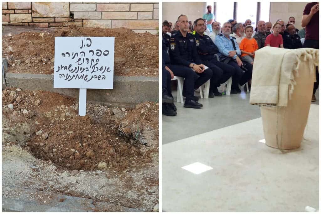 טקס קבורת שרידי ספר התורה מתחנת משטרת שדרות הישנה – התקיים הערב, יום שלישי, בבית העלמין בעיר שדרות. הטקס נערך בין השאר מעמד מפקד מחוז הדרום במשטרה ניצב אמיר כהן, ראש העיר שדרות אלון דוידי, רב העיר, הרב דרור טויל שליט"א ורב משטרת ישראל, נצ"מ רמי ברכיהו.