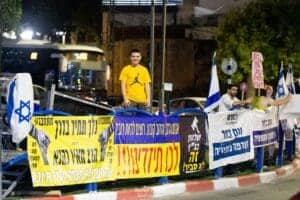 מולם, התאספו כמה עשרות פעילים התומכים במהפכה המשפטית, ואולי אף מאמינים באג'נדות מרחיקות לכת – חלק מהשלטים בצד הזה של המתרס הביעו תמיכה בכהניזם.
