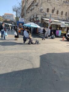 עם בוקר מגיעים כל מי שזמנו בידו, עשירי הפנאי בירושלים וקהל רבגוני למרחב הציבורי בין רחוב נבון לרחוב יפו.