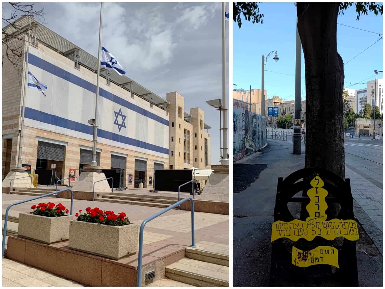 דגלי הלאום לאורכו של רחוב יפו מתנפנפים לפי תוכניתה של הרוח הירושלמית. מהססים בתפקידם לנוכח המורכבות השוררת בארץ. הקושי לנפנף בשמחה, בגאווה, בביטחון, משאיר אותם מכונפים בין הענפים הירוקים שלידם. יום רביעי – יום הזיכרון, והעיר ובליבה חומה, שהתנ"ך יעיד על סבלותיה, מלחמותיה ומצוקותיה, היא העיר שתחזור לשגרתה השזורה בין קדושה להמולה, ותמשיך לנצור את הזיכרונות בליבה.