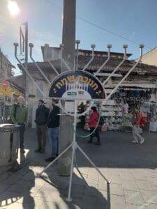 אך אלה עדיין לא מתחברים לליבנו. שליחי חב"ד הנאמנים, העמידו את חנוכיותיהם הסמליות בפתחו של רחוב מחנה יהודה ובקצהו השני להדלקה משותפת ורבתית.