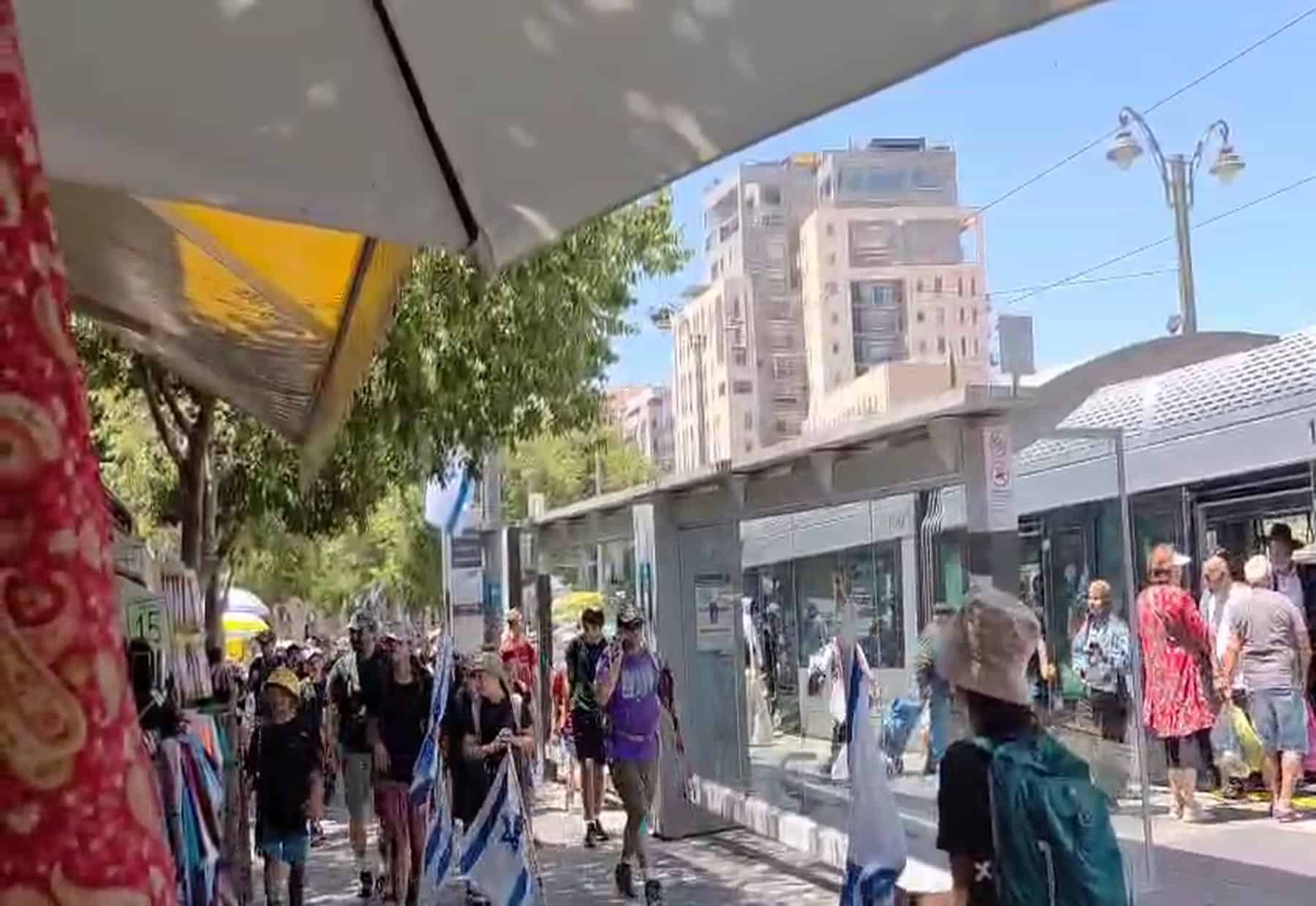 צעירים צועדים ברחוב יפו בדרך לכותל, חג השבועות בירושלים – שילוב של מסורת, תקווה ודגלים (צילום: ירושלים אונליין - בארי שחר)