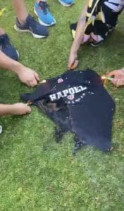 האם אמרו לו שהחולצה האדומה זו לא מציאה? אוהדי בית"ר ירושלים חגגו אמש באימון הבכורה של הקבוצה לעונת המשחקים הבאה, והפעם נוסף לטקס גם אלמנט חדש: שריפת חולה וצעיף של הפועל ירושלים.