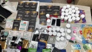 במהלך חיפוש ברכב, איתרו השוטרים בתוך שקיות, חומרים החשודים כסמים מסוכנים מסוגים שונים, ביניהם: קנביס, דוסה, קריסטל, אקסטות וחומרים חשודים נוספים בכמות שלא לצריכה עצמית. בנוסף, נתפס ברשות הנהג סכום כסף רב וסכין.