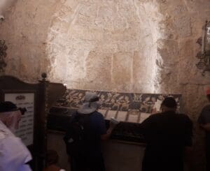 נמשיך פנימה, מי שצריך יש שירותים ציבוריים מימין. אחרי שהתארגנו, נפנה שמאלה, נחלוף על פני השומר וניכנס למתחם קבר דוד המלך. נשים וגברים בנפרד. מי שמעוניין יצטרף לתפילה שקטה ליד ציון הקבר.