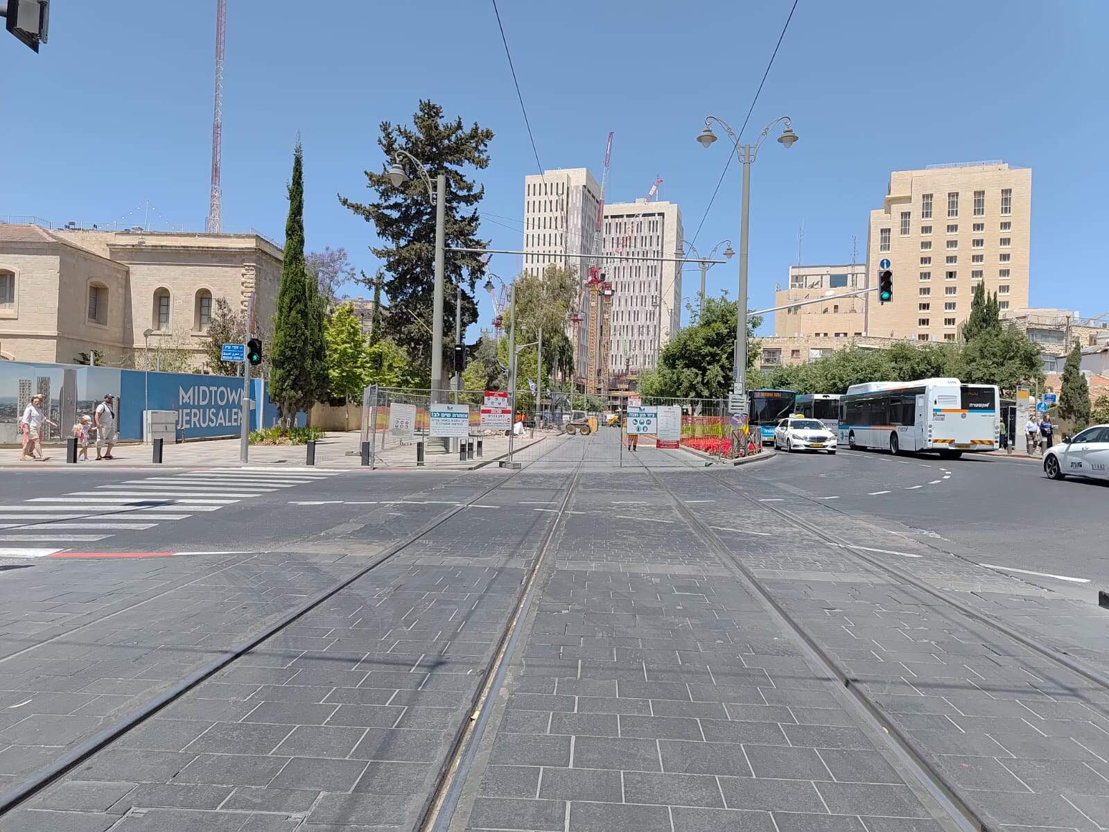 במרכז הפריים: מסילת הרכבת הקלה הדוממת, שנבלעת אל תוך מבני האבן של מרכז העיר. בצדדים – שלטי "MIDTOWN JERUSALEM" שמרמזים על השכונה החדשה שמוקמת. גם האוויר עצמו – חם, ריק משהו, מחכה שיקרה משהו.